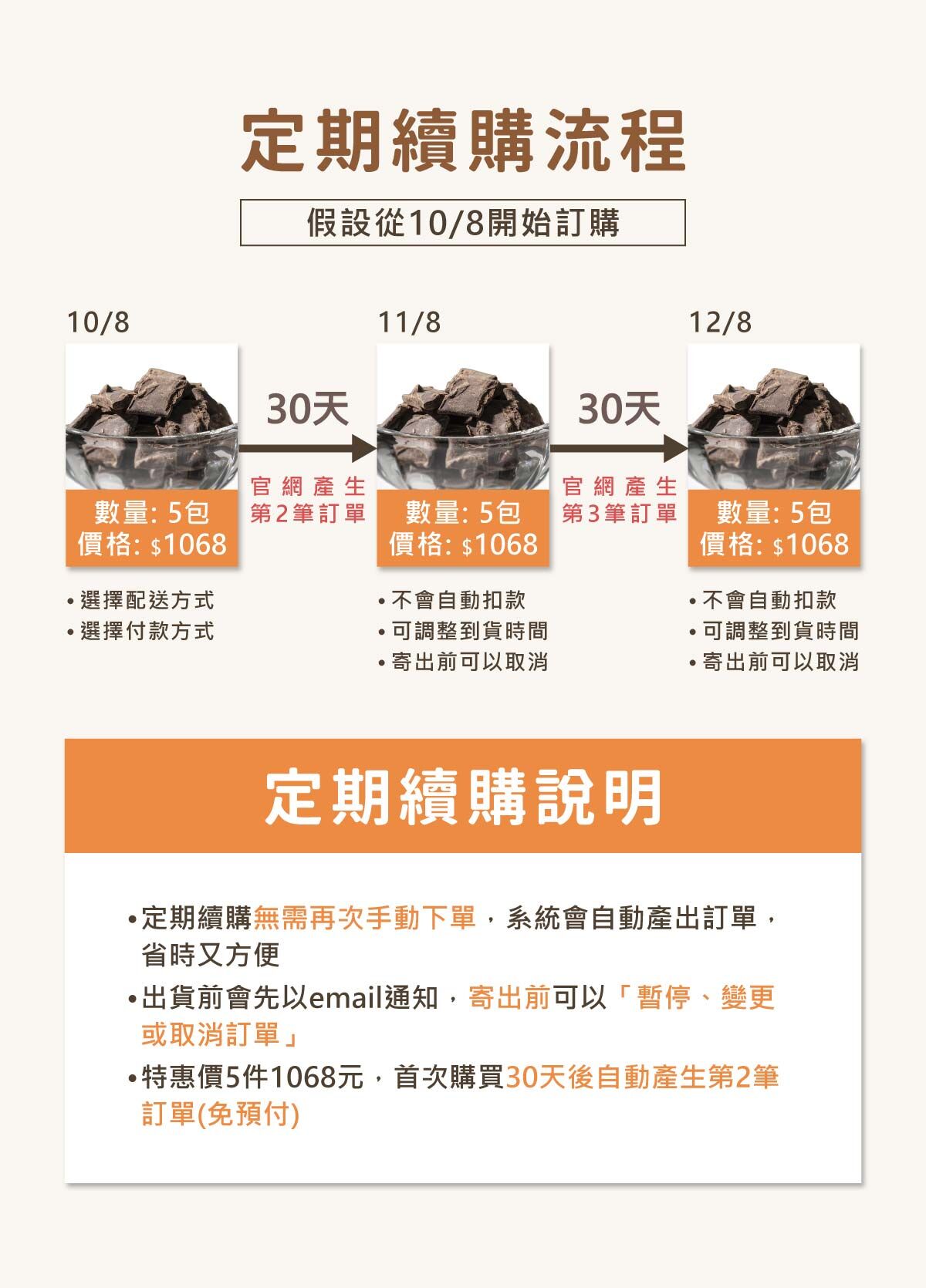 ✅ 【定期續購】無需手動續購,我們依照期數配送最愛的巧克力,省時、省力又即時。