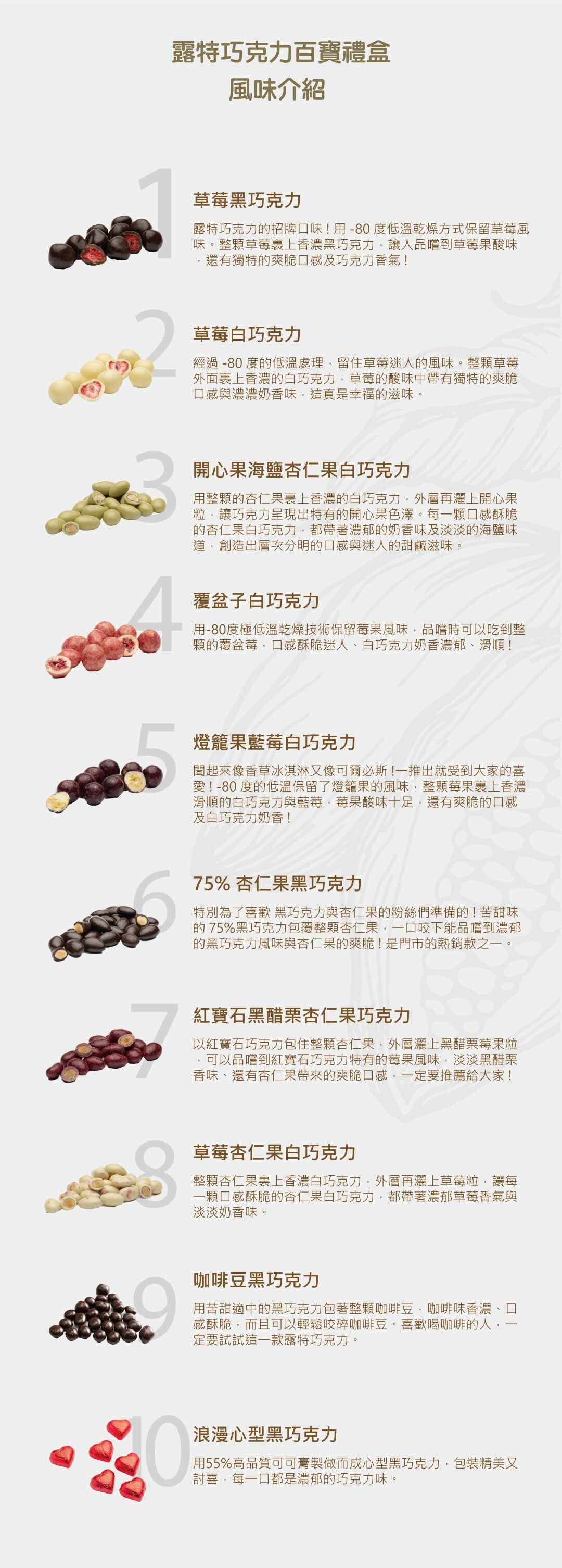 👉 經過5年、累積超過百家企業試吃,挑選十款人氣口味組合成露特巧克力百寶禮盒 !